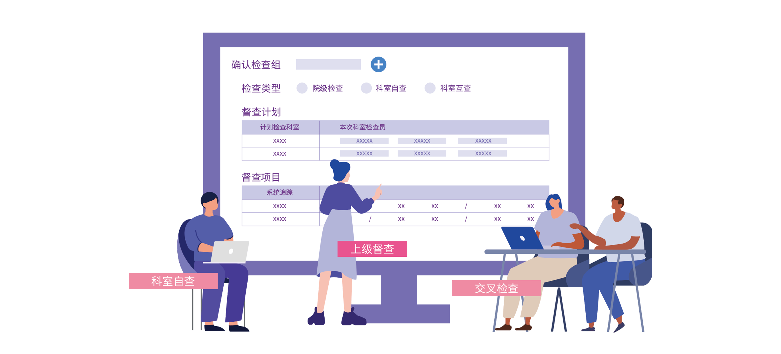 - 督查形式灵活,科室可以用科室自查、交叉检查的形式进行督导检查。上级领导部门也可以对各科室的改进情况进行督查,并对督查的项目进行调整,实现督导改进管理。