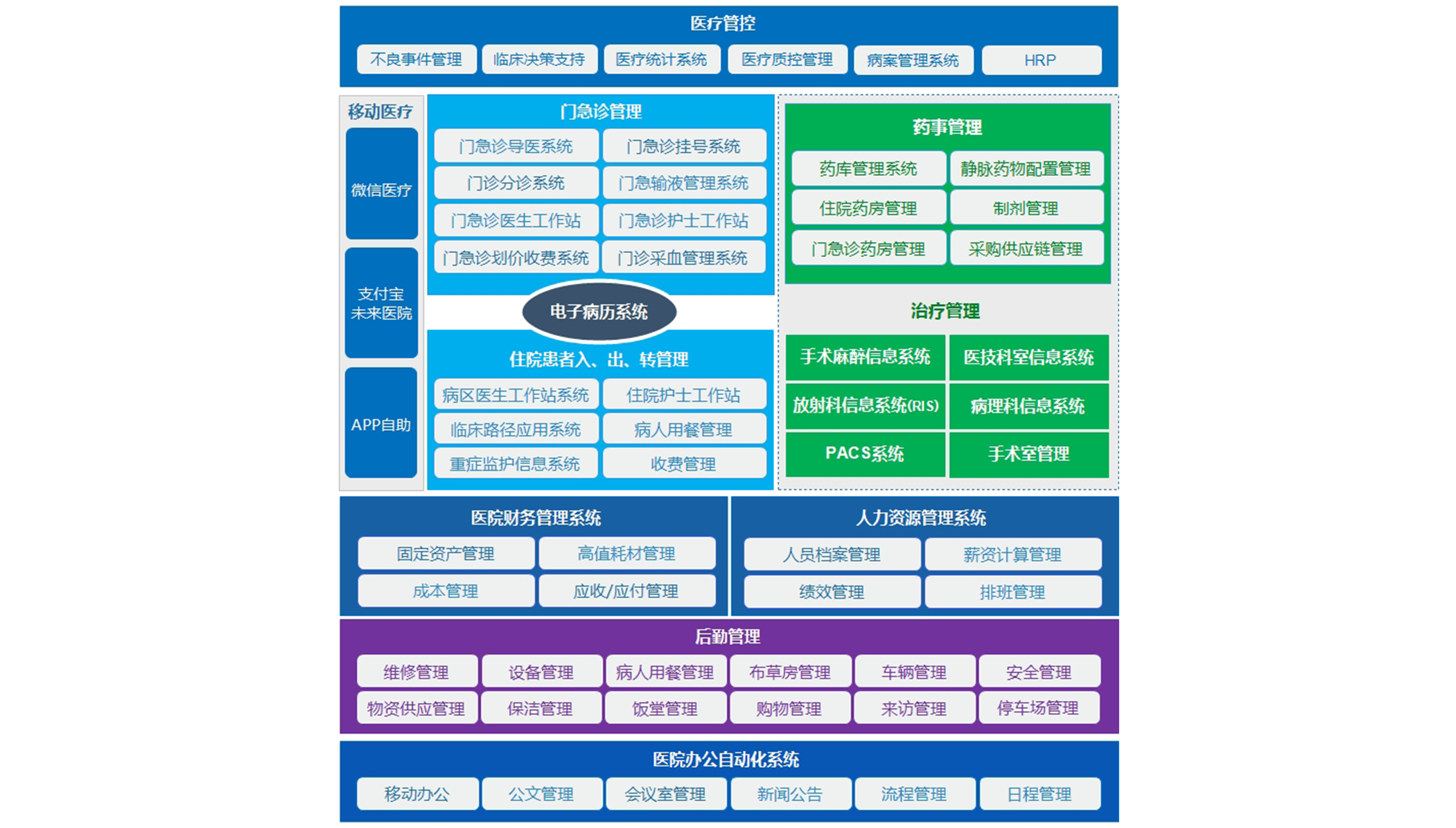 历经多年发展,科进医疗由最初的医生工作站、药房管理、收费管理,逐步发展为由“HRP”、“HIS”、“CIS”、“科研管理”、“移动应用”等版块组成的覆盖临床综合服务、客户关系运维、医疗管控、运营战略决策的以电子病历为核心的全面智慧核心产品。