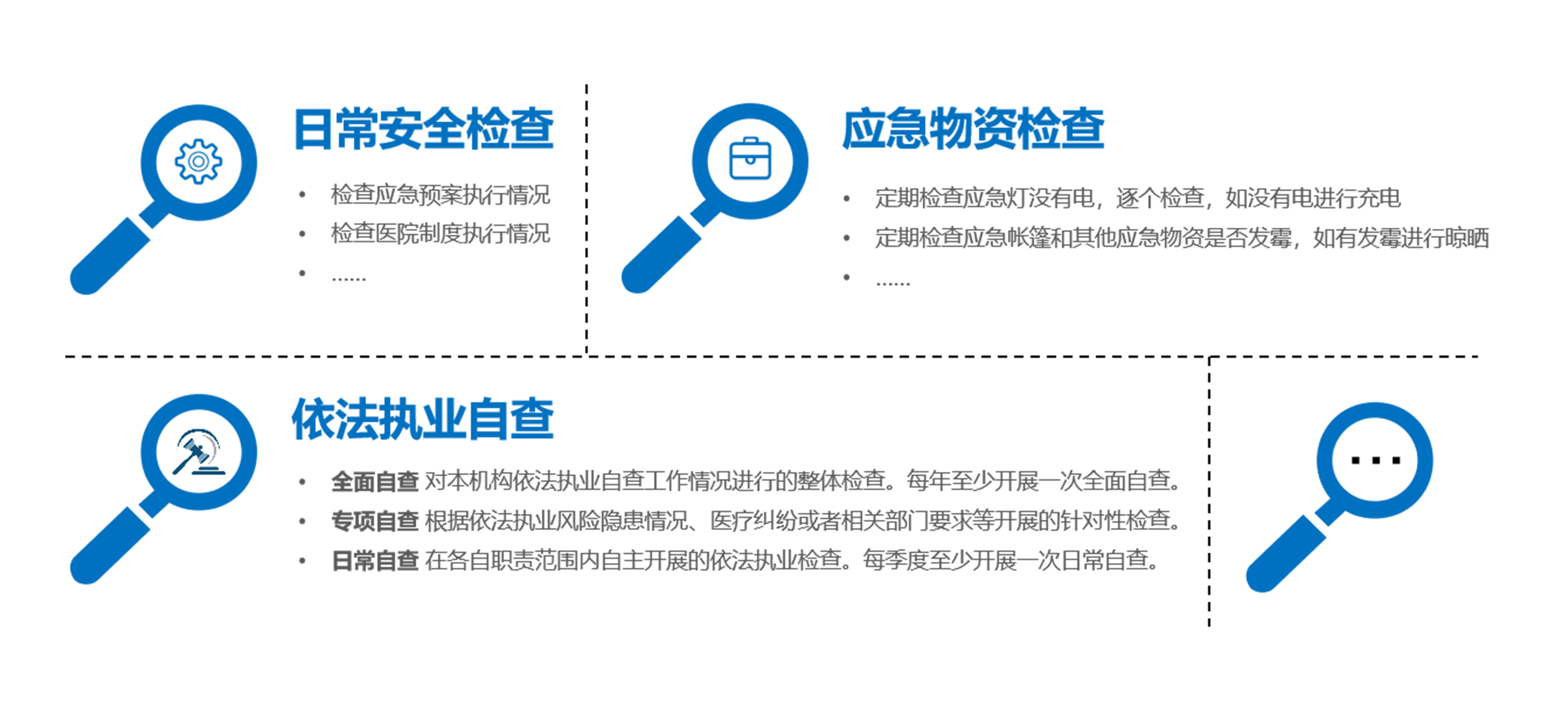 - 通过日常安全检查、应用物资检查、依法执业检查等应用场景来制定督导流程