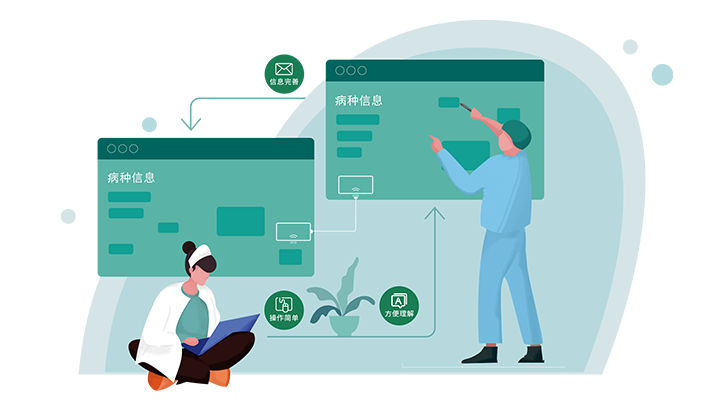 - 支持医生、护士分工协作,各自填写、核对自已所负责范围内的病种信息,避免人员间沟通容易出现的表述不清、理解有误、费时费力等问题发生,让病种信息填报工作更简单。